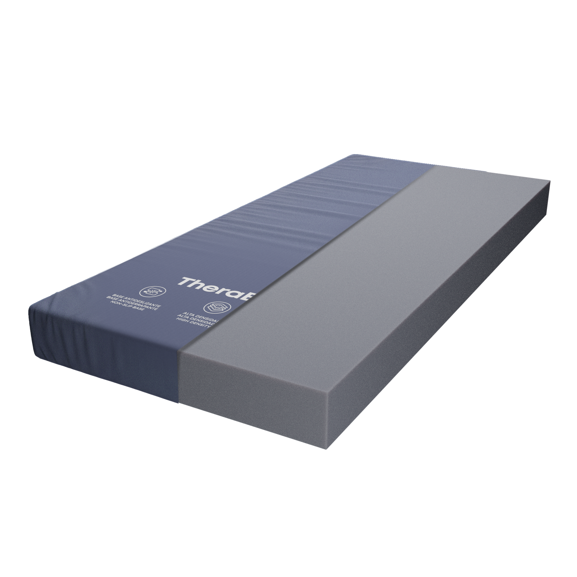 TheraBase representa lo esencial del cuidado: un colchón diseñado para ofrecer más que lo básico. A diferencia de un colchón convencional, brinda soporte firme, higiene y seguridad en cada uso. Con medidas estándar (200 x 90 x 15 cm), se adapta a distintos espacios, mientras que su espuma HD garantiza un descanso estable y confortable para quien lo necesita.